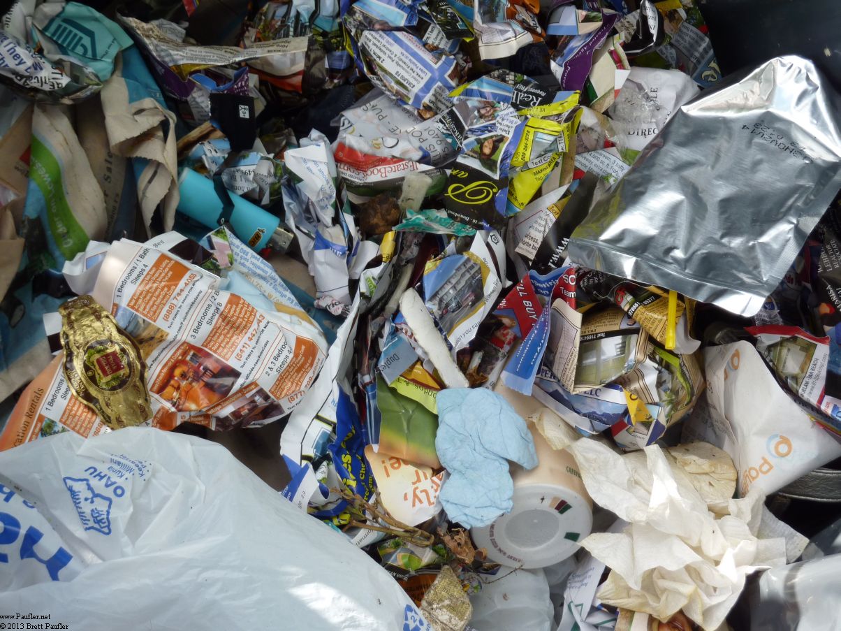 It really doesn't look that way in the picture (so who knows, maybe I was suffering from heat stroke at this point), but the garbage in this can seemed sort of peculiar to me, like someone had just wadded up an entire magazine page by page, all neat and orderly like.  I mean, I don't usually take pictures of trash cans.  But this one just sort of called out to me.